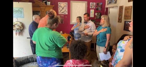 “We went to one house and (a woman) was babysitting her grandchildren and we sang the national anthem. And those little kids, when we started, all stood up and put their hands over their hearts and stood around their grandpa. I was like, oh my gosh, there's just moments like that you get from it.”